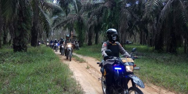 ” Patroli yang dilakukan ini untuk menjaga keamanan dan juga di tujukan untuk menjaga terjadi nya kebakaran hutan dan perkebunan, karena saat ini memasuki musim kemarau”.ujarnya.