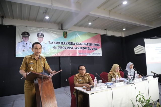 Penegasan Gubernur tersebut disampaikan Asisten II Bidang Ekonomi dan Pembangunan Provinsi Lampung Taufik Hidayat dalam sambutannya saat membuka secara resmi Rapat Koordinasi Bappeda Kabupaten/Kota se-Provinsi Lampung Triwulan I Tahun 2019 yang diselenggarakan di Bukit Randu Hotel, Senin (28/1/19).