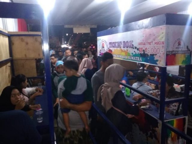 Ditemui Lampung Segalow Faisal Fahri Koordinator tiket gate 1 mengatakan bahwa di hari ketiga setelah pembukaan Pekan Raya Lampung pada malam ini pengunjung membludak.