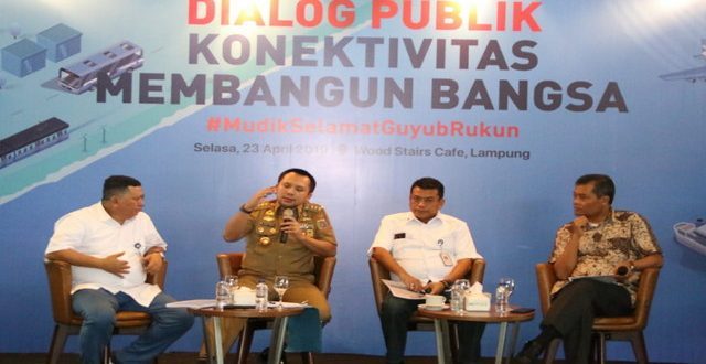 Hal tersebut disampaikan Gubernur Ridho saat menjadi narasumber pada acara Dialog Publik tentang Konektivitas Membangun Bangsa dengan hashtag #MudikSelamatGuyubRukun, di Woods Stairs Cafe, Way Halim, Bandar Lampung, Selasa (23/4).