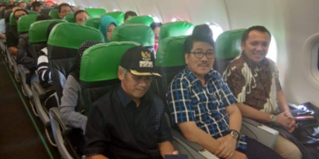 Tampak ikut dalam penerbangan ini, Bupati Pringsewu Sujadi, Plt. Sekdaprov Lampung Hamartoni Ahadis, Assinten II Sekdaprov Taufik Hidayat, Direktur Utama Bank Lampung Eria Desomsoni, dan GM Damri Lampung Suranto. Selain itu para kepala dinas dan pejabat eselon III Pemprov Lampung. (Humas Prov Lampung)