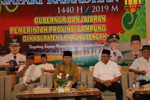 Lampunglive.com LAMPUNG TENGAH —– Gubernur Lampung Muhammad Ridho Ficardo dan jajaran Pemprov Lampung melakukan Safari Ramadhan, di Gedung Sesat Agung, Rumah Dinas Bupati Lampung Tengah, Lampung Tengah, Kamis (16/5).