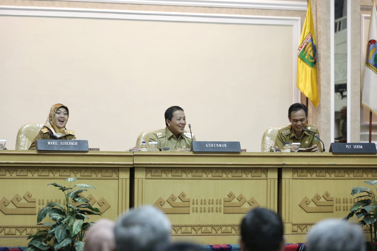 Gubernur Arinal dan wakil Gubernur Chusnunia juga menegaskan fungsinya sebagai Dwi Tunggal yang akan bersinergi dengan seluruh Organisasi perangkat Daerah ( OPD), Forkopimda dan seluruh jajarannya untuk mambangun Lampung.