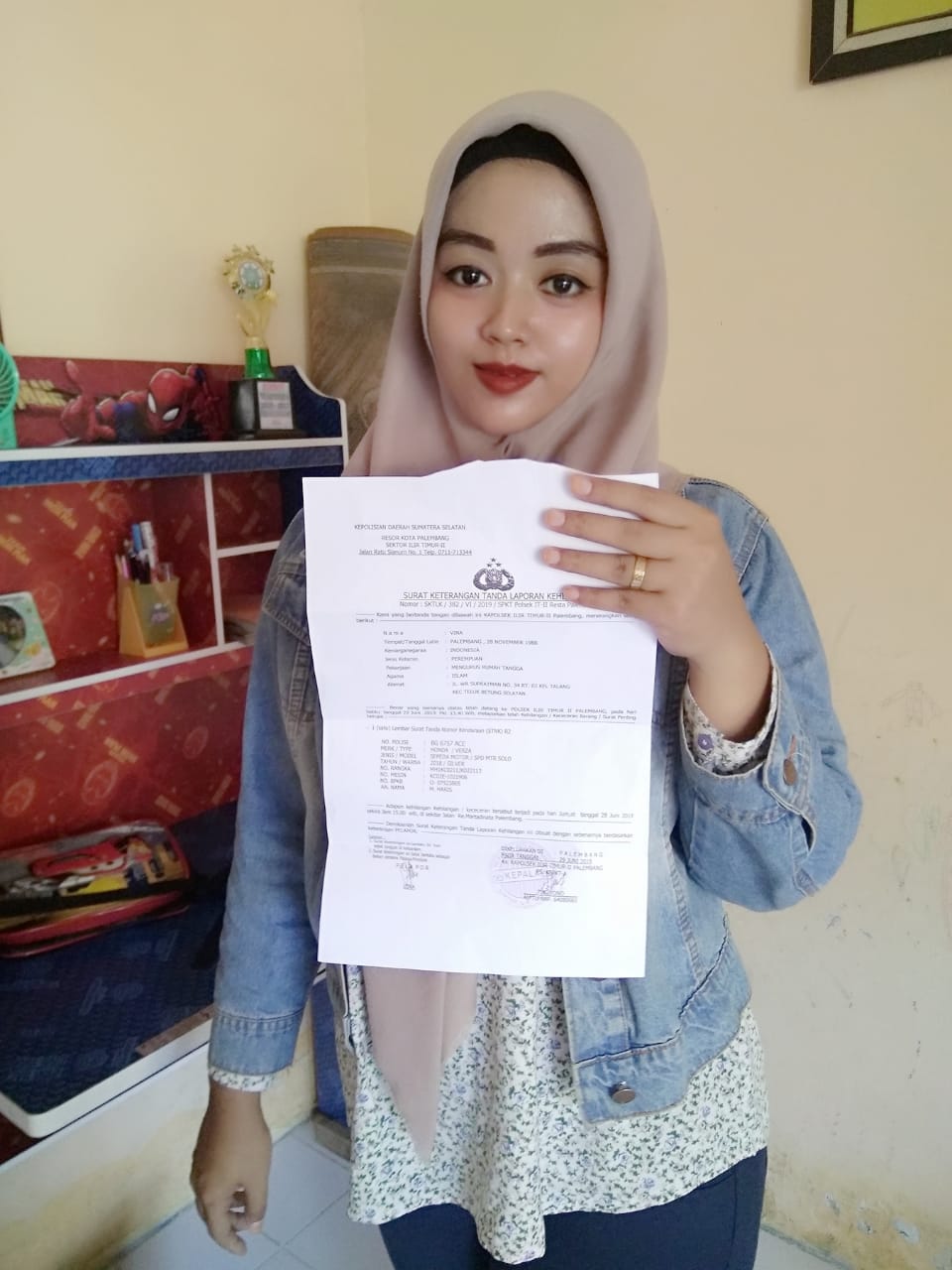 Lampunglive.com – Palembang- STNK milik Vina , tempat tanggal lahir Palembang 28 November 1988, jenis pekerjaan mengurus rumah tangga , agama : islam, alamat : jl.wr.supratman no 34 rt 02 kelurahab talang kecamatan teluk betung selatan telah datang kepolsek ilir timur 2 palembang, pada hari sabtu tanggal 29 juni 2019, pukul 13.40 wib, melaporkan telah kehilangan/kececeran barang/surat penting berupa satu lembar Surat Tanda Nomor Kendaraan (STNK) Roda dua (R2)