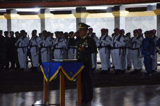 Lampunglive.com – Komandan Korem (Danrem) 043/Gatam Kolonel Inf. Taufiq Hanafi menjadi inspektur upacara (Irup) Apel Kehormatan dan Renungan Suci dalam rangka memperingati Hari Proklamasi Republik Indonesia Ke-74 Tahun 2019 di Taman Makam Pahlawan (TMP) Tanjung Karang, Jl. Teuku Umar Kecamatan Kedaton, Bandar Lampung, Jumat (16/8) Pukul 24.00 WIB.