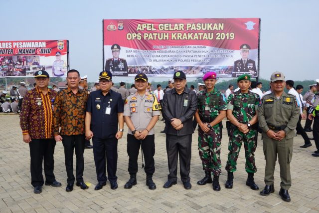 “Para peserta apel yang saya hormati, apel gelar pasukan yang kita laksanakan pada hari ini menandakan dimulainya operasi patuh krakatau 2019, dimana operasi ini akan dilaksanakan selama 14 hari dimulai pada tanggal 29 agustus 2019 sampai dengan 11 september 2019 dengan cara bertindak penegakan hukum disertai kegiatan preemtif dan preventif secara selektif prioritas”.