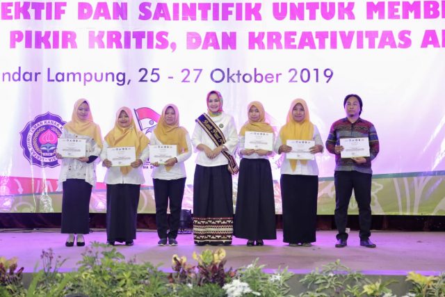 “Selaku bunda PAUD yang mewakili Pemprov Lampung saya berharap ilmu dan bekal yang didapatkan oleh para dewan Guru selama tiga hari mengikuti pelatihan yang disampaikan oleh berbagai narasumber ini dapat bermanfaat dalam memberikan pendidikan bagi para murid PAUD,”.