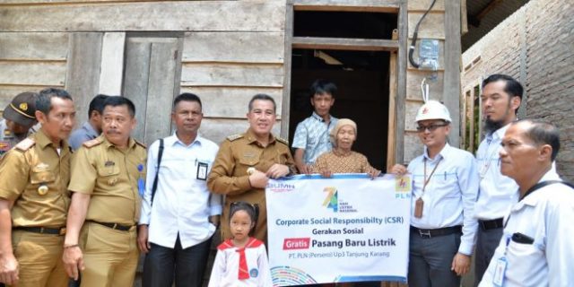 Lampunglive.com – Pesawaran-Bupati Pesawaran Dendi Romadhona Resmikan Bantuan Program Elektrifikasi Pasang Baru Gratis Daya 450 Volt Amper bagi rumah miskin di kecamatan punduh pidada dan di hadiri oleh kadis Nakertran, kadis kominfo, camat Punduh Pudada, Selasa (29/10).