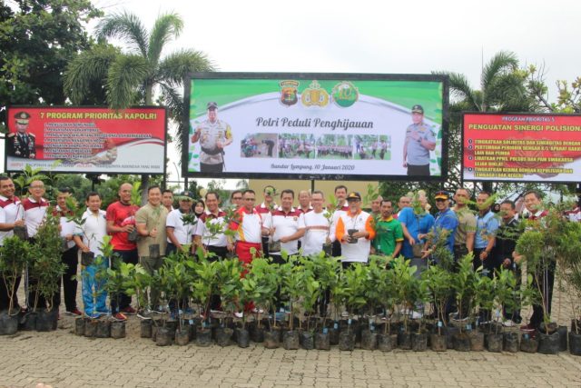 Gerakan Polri peduli penghijauan merupakan salah satu aksi konkrit dan upaya nyata yang dilakukan secara serentak dan berkesinambungan di seluruh Indonesia untuk memulihkan kondisi alam yang tandus dan kering sekaligus membangun kesadaran masyarakat untuk menanam pohon dan melestarikan nya,betapa penting nya pepohonan dalam kehidupan manusia dan alam semesta terangnya