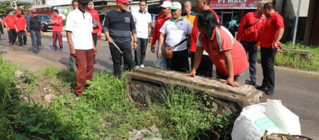 Adapun titik pertama yang menjadi sasaran gotong royong kali ini ada di Dusun Kedaton Sembilan, Desa Serdang. Disini masyarakat bersama Aparatur Sipil Negara (ASN) bergotong royong membersikan selokan di kanan kiri Jalan Raya Serdang.