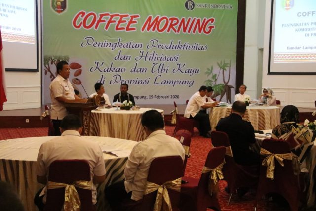 Hal tersebut disampaikan Gubernur Arinal Djunaidi dalam acara Coffee Morning bertemakan Peningkatan Produktivitas dan Hilirisasi Kakao dan Ubi Kayu, di Bank Indonesia (BI) Perwakilan Lampung, Bandarlampung, Rabu (19/2).