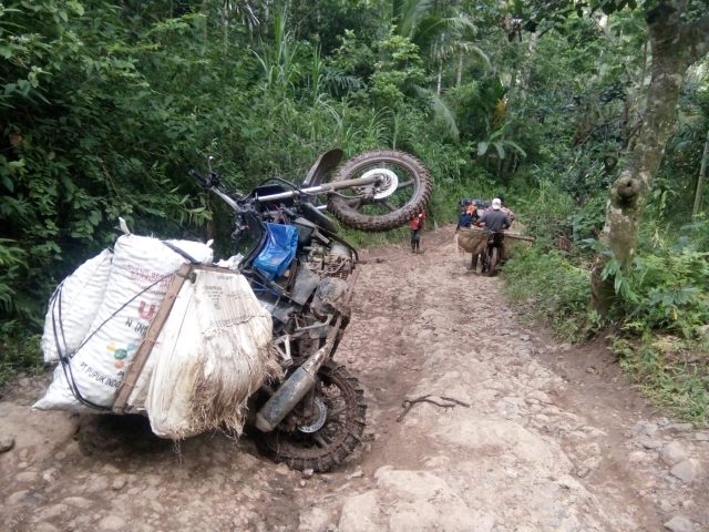 Di tempat yang sama usup sangat mengeluhkan melihat kondisi jalan berbatu dan campur tanah dan rusak serta berlubang dan licin di jalan sampang turus.