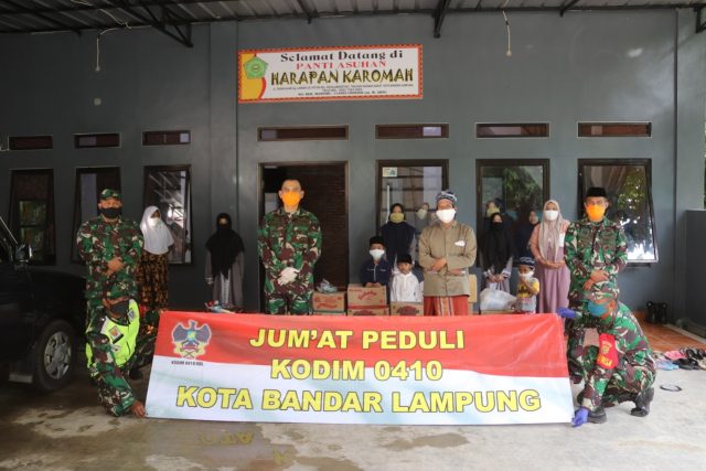 Lampunglive.com – Dandim 0410/KBL memimpin pelaksanaan bhakti sosial Bakti Sosial dalam rangka Peduli Kodim 0410/KBL di Panti Asuhan Harapan Karomah, Jalan Pagar Alam Gang Landak No. 20 Kelurahan Segala Mider, Tanjungkarang Barat, Sabtu (18/4).