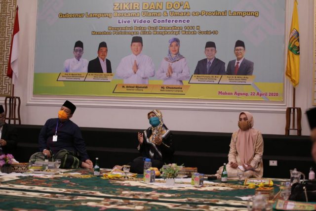 “Meski melalui daring dengan posisi terpisah, namun yakinlah Allah SWT mendengar doa kita bersama. Mari satukan hati dan batin kita untuk bermunajat kepada Allah SWT agar wabah Covid-19 ini segera berakhir,” ujar Gubernur Arinal.