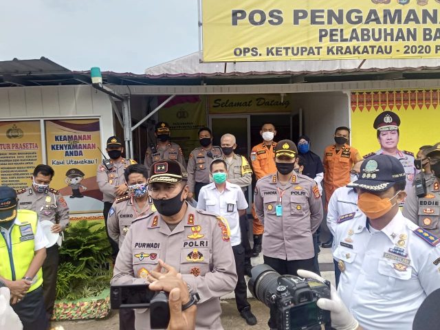 Lampunglive.com – Kapolda Lampung Irjen Pol Drs. Purwadi Arianto, M.Si., melakukan pemantauan penyekatan terhadap kendaraan maupun penumpang yang hendak melintas ke Pulau jawa di Seaport Interdiction Pelabuhan Bakauheni Lampung Selatan.