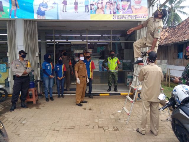 Lampunglive.com – PESAWARAN-Tim Gugus Tugas Percepatan Penanganan (TGTPP) Covid-19 Kabupaten Pesawaran sosialisasikan New Normal dengan penerapan disiplin protokol kesehatan di Kecamatan Kedondong, Senin (08/06).