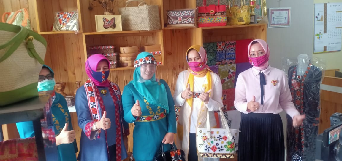 Motivasi Riana Sari Arinal disampaikan saat meninjau galeri Dekranasda Kabupaten Lampung Barat, Jumat (19/6/2020). Riana Sari disambut hangat oleh Ketua Dekranasda Lampung Barat Partinia Parosil Mabsus dan pengurus Dekranasda Lambar lainnya.
