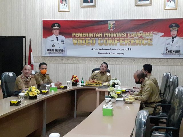 BANDAR LAMPUNG — Gubernur Lampung, Arinal Djunaidi, menghadiri Rapat Pembahasan Progres Pembangunan Kawasan Industri, Rencana Pembangunan Jangka Menengah Nasional (RPJMN) di Provinsi Lampung melalui Virtual Meeting dengan Kementerian Perindustrian, di Ruang Command Center Dinas Kominfo dan Statistik Provinsi Lampung, Senin (06/07).