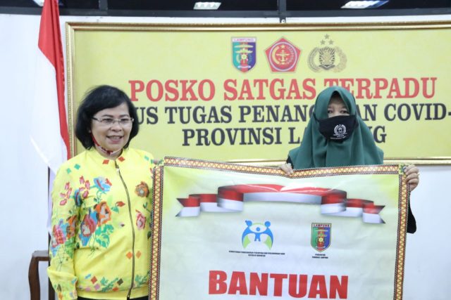 Kepala Dinas Pemberdayaan Perempuan dan Perlindungan Anak Provinsi Lampung Theresia Sormin dalam laporannya menyampaikan bahwa bantuan berasal dari Kementerian Pemberdayaan Perempuan dan Perlindungan Anak bagi Perempuan dan Anak Rentan Covid -19 dengan jumlah 854 paket.