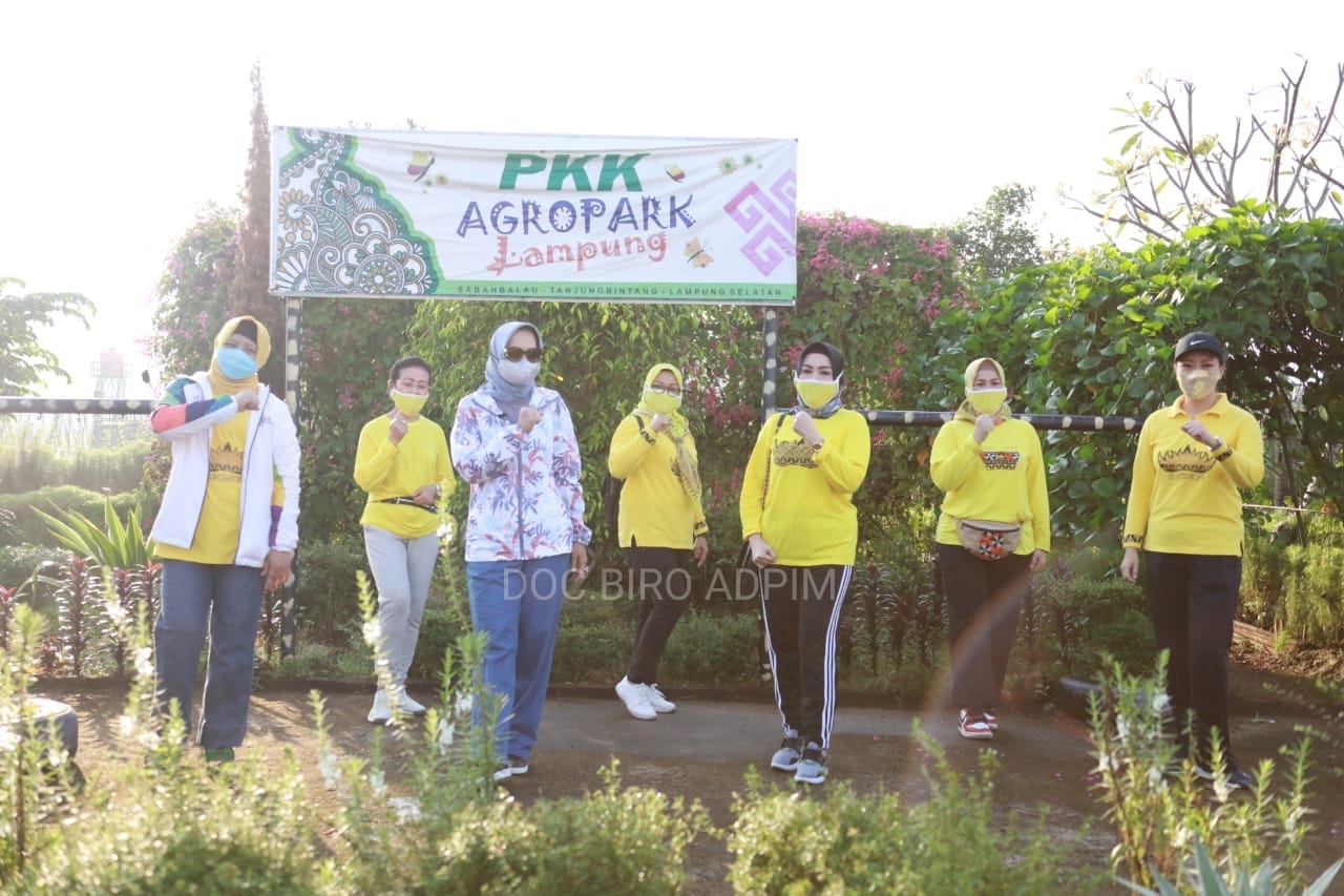 LAMPUNG SELATAN —- Demi menggalakkan olahraga dan wisata keluarga, Ketua Tim Penggerak PKK Provinsi Lampung Ibu Riana Sari Arinal mengajak seluruh organisasi wanita di Provinsi Lampung melakukan senam dan memasak bersama di Argo Park PKK Provinsi Lampung, Selasa pagi (21/7/2020).