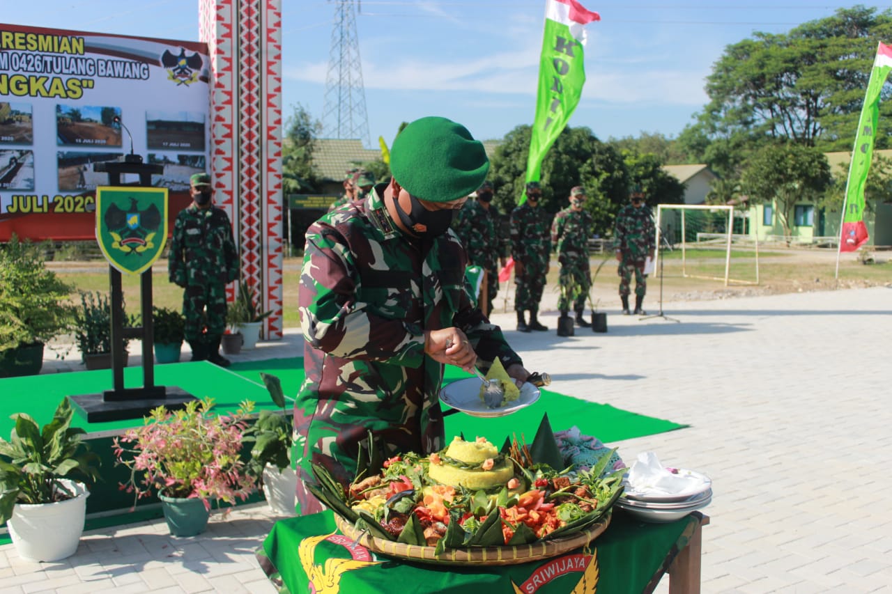 Acara peresmian diawali dengan penandatanganan prasasti, pemotongan tumpeng yang diberikan kepada perwira terbaik Kodim 0426 Tulang Bawang Kapten CBA Karyadi Syahputra, dan penyerahan secara simbolis bibit kelapa merah dan durian montong kepada perwakilan anggota Kodim.