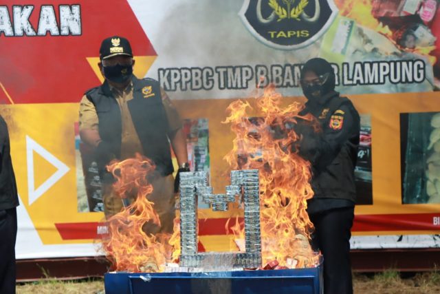 “Saya juga mengucapkan selamat kepada Bea Cukai Tipe Madya Bandar Lampung atas keberhasilan melakukan tindakan pada pelanggaran ketentuan di bidang bea dan cukai, serta keberhasilan dalam menyelenggarakan kegiatan Pemusnahan Barang Bukti Milik Negara Hasil Penindakan Bea Cukai Lampung,” tambahnya lagi.