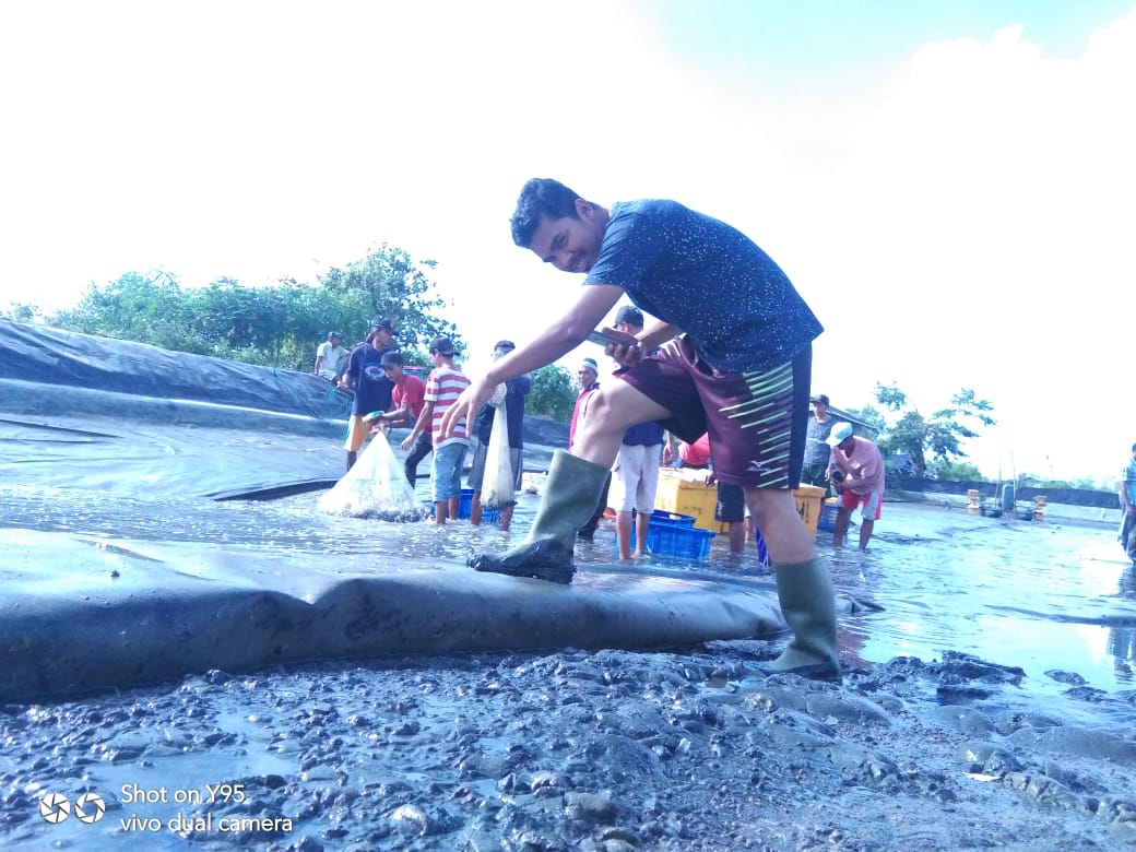 “Alhamdulillah dari panen kali ini bisa mendapat sekitar Rp 150 juta. Ini hanya satu tambak ya, satu tambak lagi saya panen dini waktu umur 60 hari. Saya kurang teliti mengamati udang dari awal, telat ngincir, dan udang kurang oksigen akhirnya 1 tambak itu banyak yang mati,” ujar Wagiran.