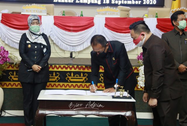 BANDAR LAMPUNG, lampunglive.com —- Pemerintah Provinsi Lampung, melalui Wakil Gubernur Lampung Chusnunia Chalim (Nunik), menjelaskan adanya dampak Pandemi Covid-19 terhadap laju dan pertumbuhan perekonomian, baik di skala nasional maupun di Provinsi Lampung dalam acara “Penandatanganan Nota Kesepakatan Kebijakan Umum Perubahan APBD (KUPA) dan Prioritas Plafon Anggaran Sementara (PPAS) Perubahan APBD Tahun Anggaran 2020, dalam Sidang Paripurna DPRD Provinsi Lampung, Jumat (18/9/2020).