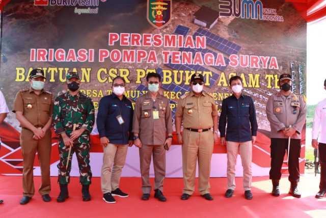 Pompa Tenaga Surya tersebut merupakan bantuan CSR dari PT Bukit Asam Tbk. Peresmian diawali dengan penekanan sirine sebagai tanda diresmikannya Irigasi Pompa Tenaga Surya.