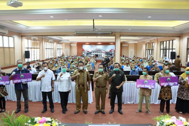 Dalam kesempatan tersebut diserahkan bantuan secara simbolis oleh Gubernur Lampung berupa hewan ternak Ayam dan itik yang bersumber dari dana APBD Kabupaten Lampung Selatan Tahun 2020 yang masuk dalam cluster ekonomi Penanggulangan Pandemi Covid-19 dengan nilai total sebesar Rp. 3.825.946.000,- dan diserahkan kepada 280 Kelompok Ternak Ayam dan Itik dengan jumlah total ternak sebanyak 62.160 ekor.