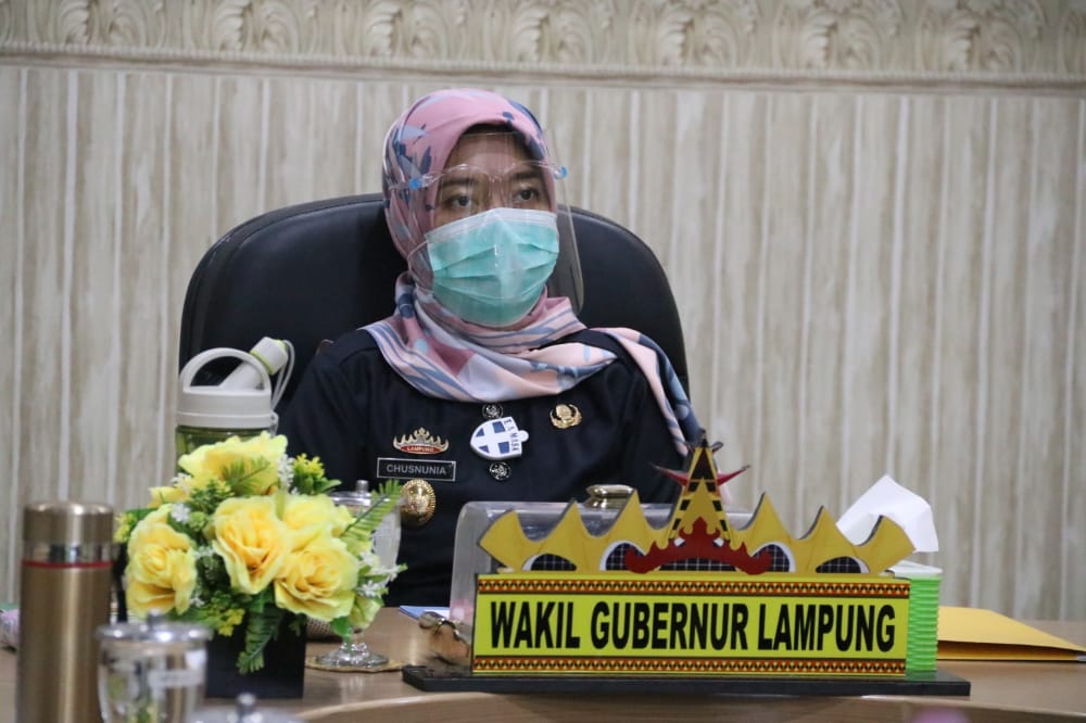 BANDAR LAMPUNG , lapunglive.com — Wakil Gubernur Lampung, Chusnunia, menghadiri Video Conference Scalling Up Nutrition (SUN) Anual Meeting 2020 (virtual meeting) di Ruang Command Center Dinas Kominfo dan Statistik Provinsi Lampung, Senin (14/12).