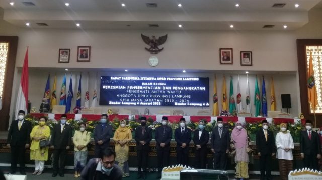 Enam aleg yang dilantik berasal dari fraksi PKS dan Partai Golkar. Rinciannya untuk PKS adalah Vittorio Dwison menggantikan Ahmad Mufti Salim dari Dapil VII (Lamteng), kemudian Zunianto menggantikan Johan Sulaiman Dapil III (Pringsewu, Pesawaran, dan Metro), dan Puji Sartono menggantikan Antoni Imam, Dapil II (Lampung Selatan).