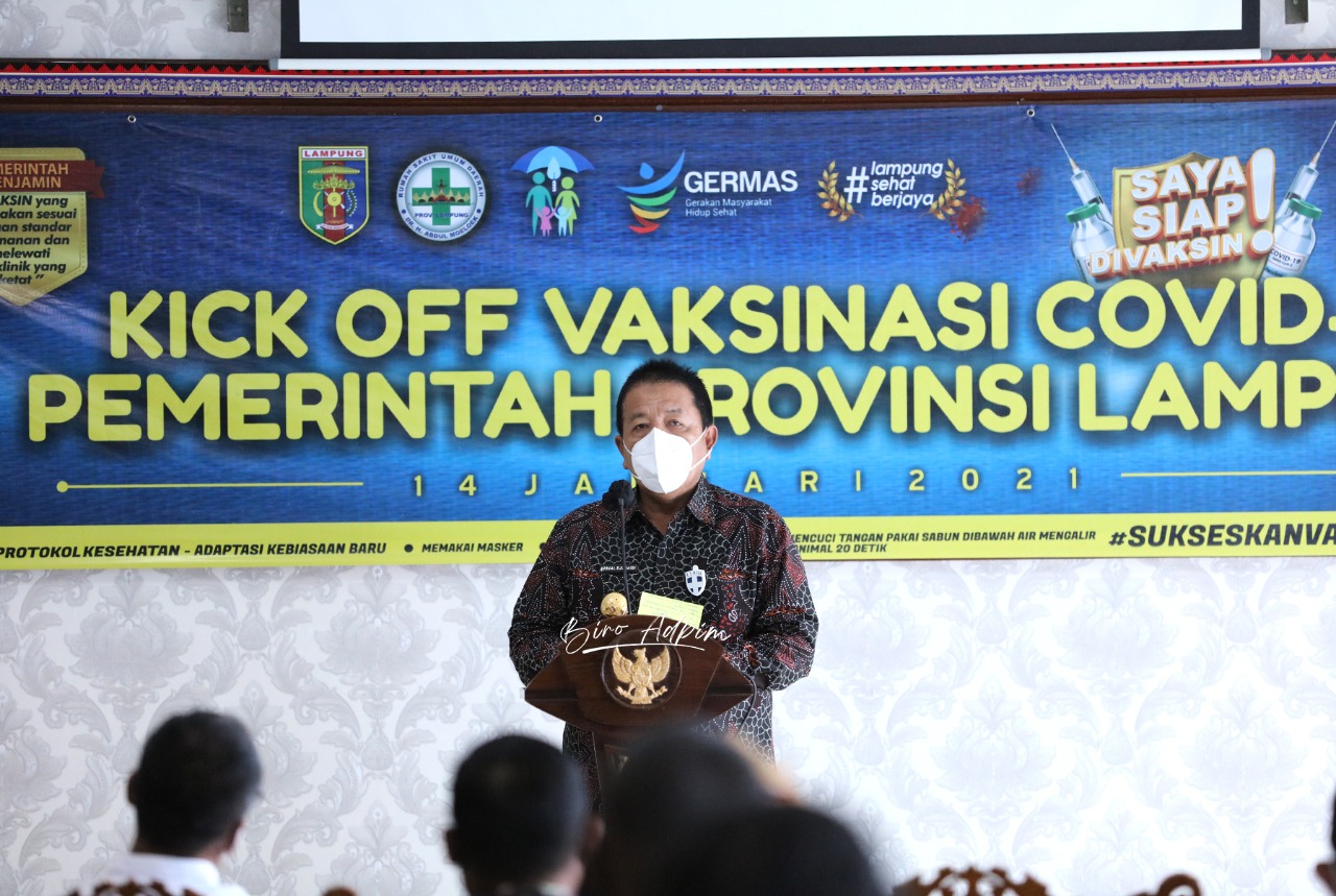“Saya hadir di sini tetapi tidak divaksin karena usia. Saya yakin, saya mau dan saya bisa, namun karena sudah 64 tahun jadi hanya menyaksikan,” ujar Gubernur Arinal.