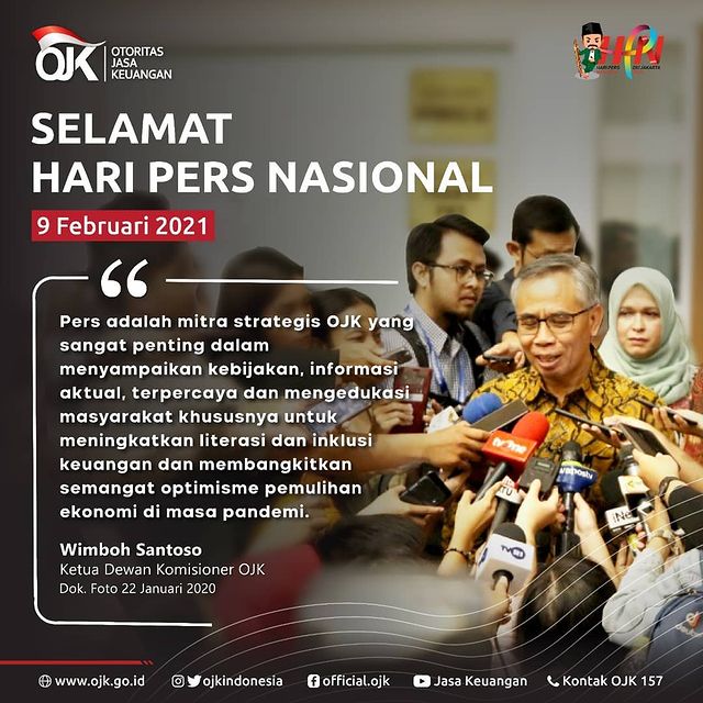 lampunglive.com, — Sobat OJK, pers adalah mitra strategis OJK yang sangat penting dalam menyampaikan kebijakan, informasi aktual, terpercaya dan mengedukasi masyarakat khususnya untuk meningkatkan literasi dan inklusi keuangan dan membangkitkan semangat optimisme pemulihan ekonomi di masa pandemi.