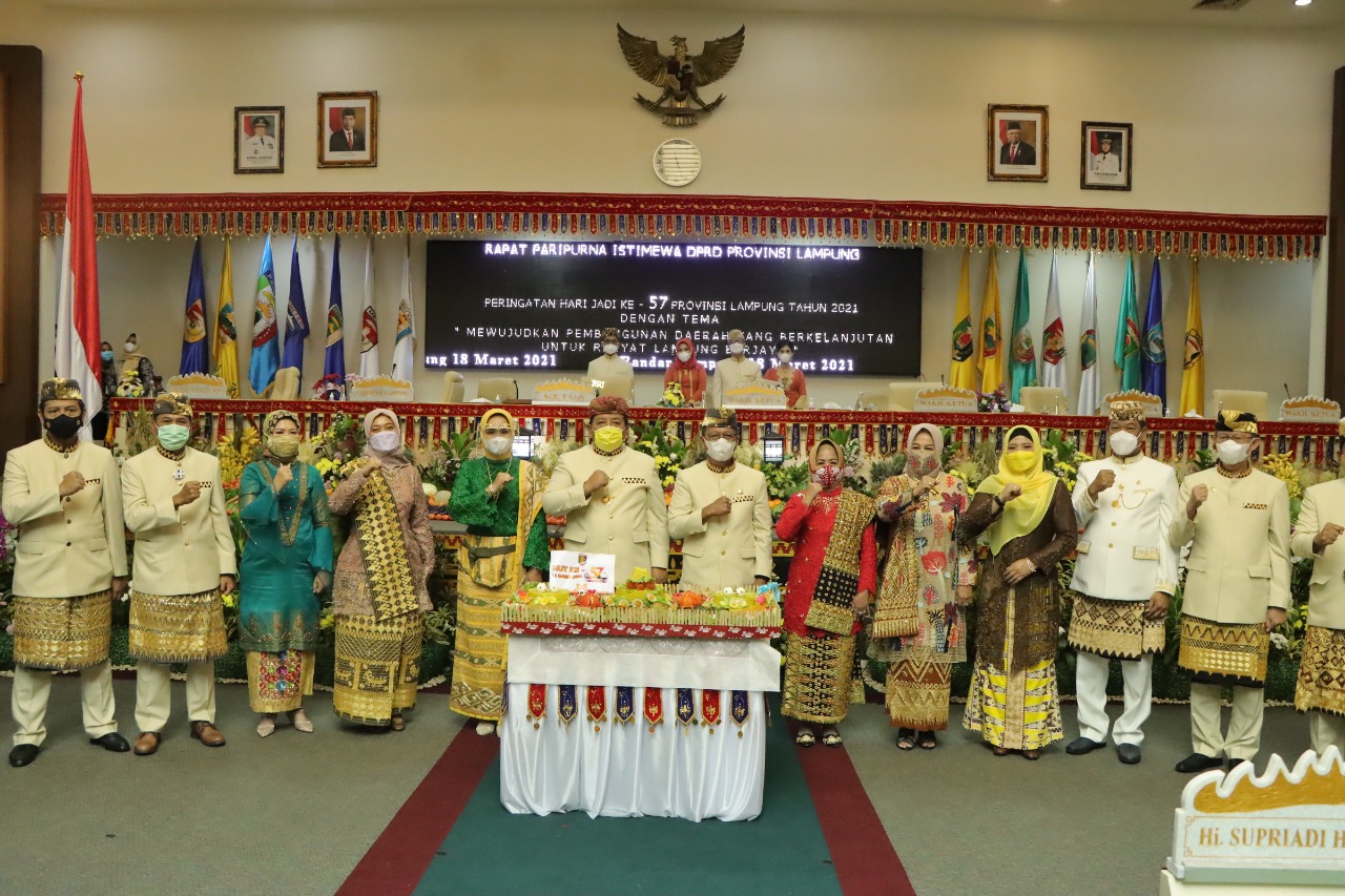 Bersamaan dengan peringatan HUT ke-57 Provinsi Lampung ini, DPRD Provinsi Lampung memberikan penghargaan kepada stakeholder dan seluruh elemen yang telah berkontribusi dan membantu mengatasi pandemi Covid-19, diantaranya kepada Kepolisian Daerah Lampung, Korem 043/Garuda Hitam, Kejaksaan Lampung, Lanal Lampung, Brigif Marinir dan TP PKK Provinsi Lampung.