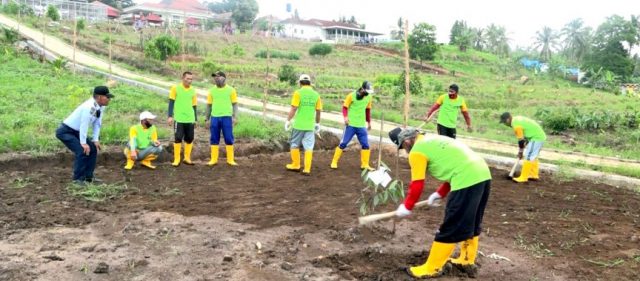 Terlihat dilokasi salah satu pengawas dari Lapas Kelas II A Kalianda, Panuju sedang memberi arahan kepada para warga binaan yang dijadwalkan saat ini, Senin (5/4/2021).