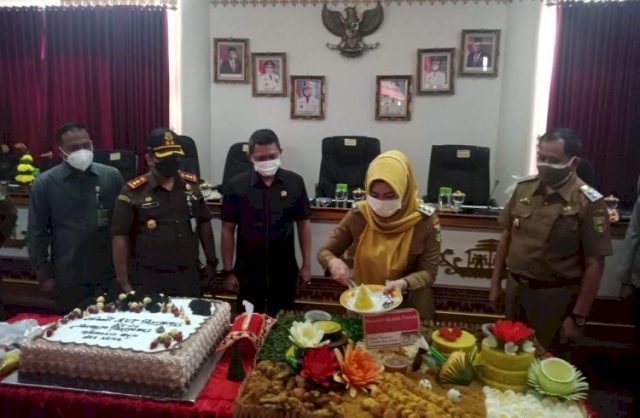 Tanggamus, – Pemerintah Kabupaten (Pemkab) Tanggamus menyelenggarakan Peringatan Hari Ulang Tahun (HUT) ke-24 Kabupaten Tanggamus, di Ruang Rapat Utama Pemkab Tanggamus,Semua yang hadir di Ruangan Rapat tetap patuh dan mengikuti Aturan PROTOKOL KESEHATAN(PROKES) untuk mencegah dan menghindari penyebaran dan penularan Covid-19 Senin 22,04,2021.