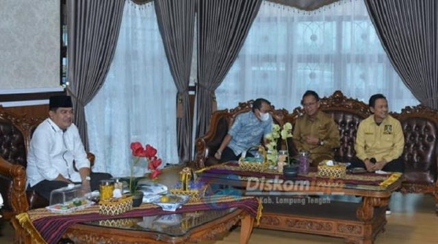 Lampung Tengah, – Kunjungan Anggota Dewan Perwakilan Rakyat Daerah (DPRD) Provinsi Lampung Daerah Pemilihan (Dapil) VII Kabupaten Lampung Tengah dalam rangka silaturahmi di sela-sela reses di Rumah Dinas Bupati Lampung Tengah disambut Bupati Lampung Tengah Musa Ahmad bersama Wakil Bupati Lampung Tengah Ardito Wijaya, Selasa (4/5/2021).