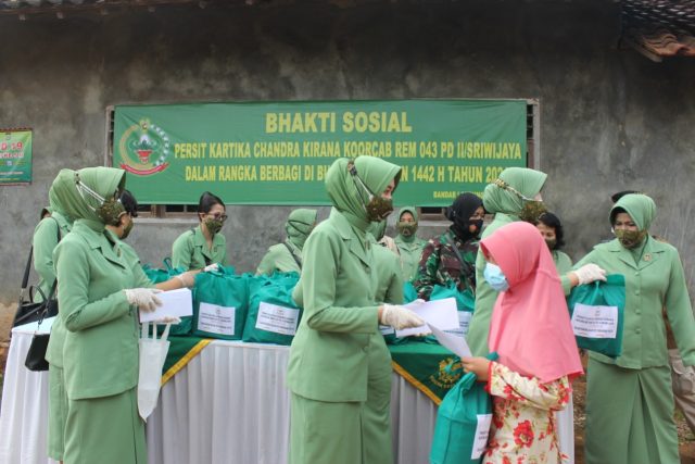 “Pada kesempatan yang ada, Ketua Persit KCK Koorcab Rem 043 PD II/Swj Ny. Epie Drajad Brima Yoga mengungkapkan, bahwa hal ini merupakan kegiatan sosial yang dilakukan melalui membagikan sembako kepada masyarakat yang membutuhkan, sebagai wujud kepedulian kita kepada sesama.” ungkap Ny. Epie Drajad Brima Yoga ketika memberikan sambutan di lokasi kegiatan, Selasa (11/5/2021).
