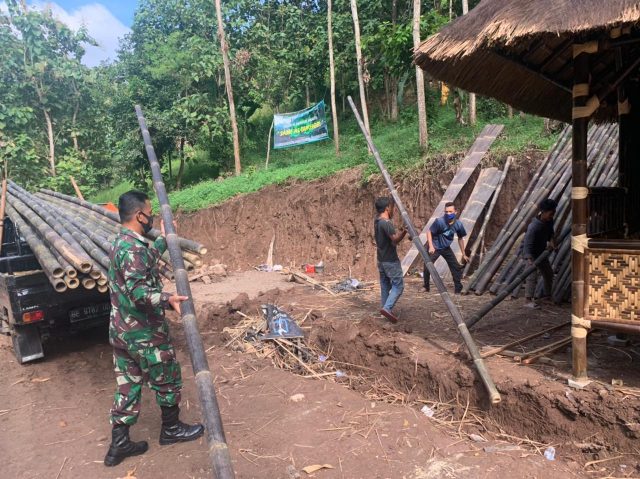 Melalui kegiatan Komsosnya itu, Sertu Agus bersilaturahmi sekaligus membantu warga wilayah binaan yang sedang melakukan aktivitas berupa pembuatan saung bambu di Jln. Terusan Ragom Gawi III RT 03/I Kelurahan Kedaung, Kecamatan Kemiling Kota Bandar Lampung. Rabu (19/5/2021)