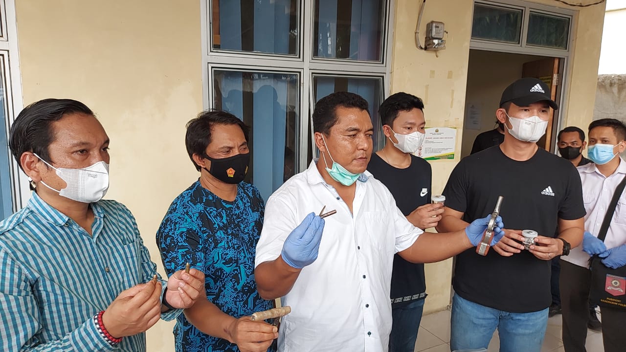 Tidak hanya itu, turut disita sejumlah barang bukti berupa satu pucuk senjata api rakitan jenis revolver warna stainless, satu buah kunci leter T berikut dua buah anak kunci, dua butir amunis aktif.