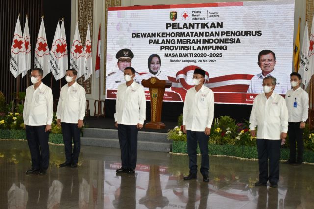 Lampunglive.com – Bandar Lampung – Komandan Korem 043/Garuda Hitam Brigjen TNI Drajad Brima Yoga, S.I.P., M.H. menghadiri acara pelantikan dewan kehormatan dan pengurus PMI Provinsi Lampung masa bakti 2020-2025 oleh Ketua Umum PMI Pusat Dr. Drs. H. Muhammad Yusuf Kalla bertempat di Mahan Agung Jl. Dr. Susilo Kel. Sumur Batu Kec. Teluk Betung Utara Kota Bandar Lampung, Jumat 28/05/2021.