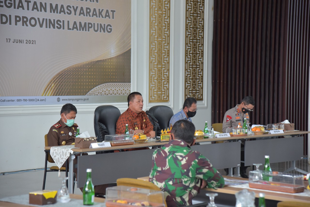 Rapat dilaksanakan secara virtual dan dikuti oleh seluruh Kabupaten/Kota se-provinsi Lampung. Rapat juga dihadiri oleh jajaran Forkopimda Provinsi Lampung dan kepala OPD terkait.