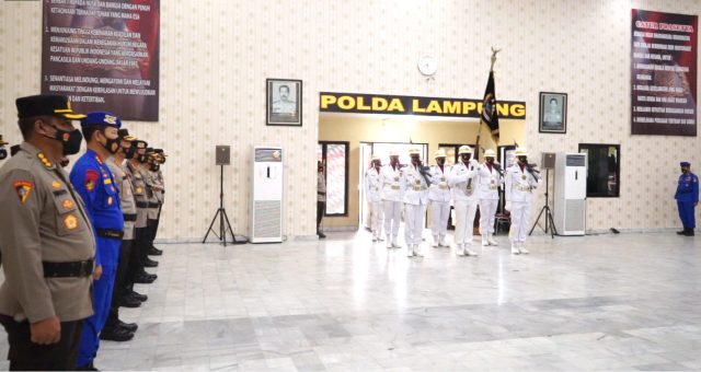Lampunglive.com – Bandar Lampung -Polda Lampung menggelar Upacara pemuliaan nilai-nilai luhur Tribrata hari ini. Kegiatan itu melakukan pencucian terhadap pataka Polda Lampung.