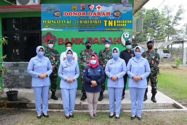 Lampunglive.com – Dalam rangka memperingati Hari Bakti TNI Angkatan Udara ke-74, segenap personel Lanud Pengeran M. Bun Yamin mengikuti aksi donor darah di Kantor PMI Tulang Bawang, Menggala, Rabu (4/8/2021). Kegiatan donor darah yang dilaksanakan atas kerja sama Lanud Pangeran M. Bun Yamin dan PMI Kabupaten Tuba ini merupakan rangkaian akhir dari peringatan Hari Bakti TNI AU tahun 2021.