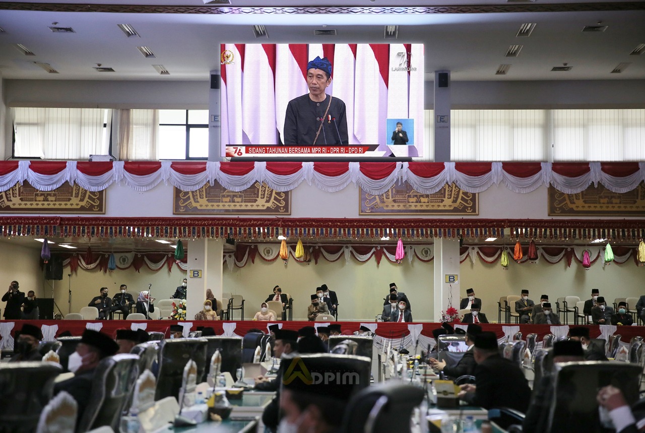 Rapat Paripurna Istimewa DPRD Provinsi Lampung dibuka oleh Ketua DPRD Provinsi Lampung Mingrum Gumay. Usai membuka rapat, menanti Pidato Kenegaraan Presiden Jokowi, Mingrum bersama seluruh peserta rapat mendengarkan lantunan lagu kebangsaan yang dibawakan Arjuna Entertainment Provinsi Lampung.