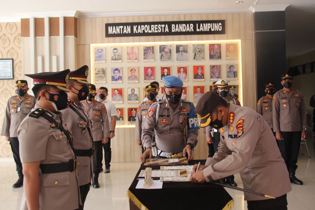 Serah Terima dan pelantikan dilaksanakan di Ruang Koridor Polresta Bandar Lampung dengan dihadiri Wakapolresta Bandar Lampung AKBP Ganda MH.Saragih, S.IK., seluruh pejabat Utama dan Kapolsek Jajajaran acara dilaksanakan dengan tetap mematuhi Protokol Kesehatan dengan menjaga jarak dan memakai masker.