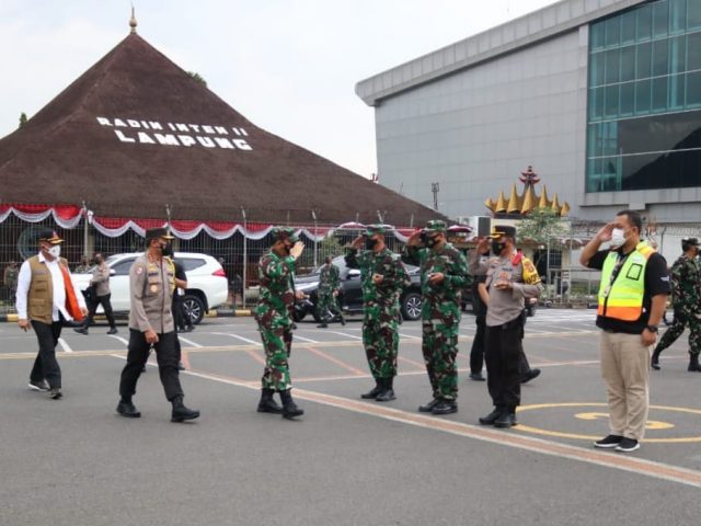 Lampunglive.com – TNI AU. Komandan Lanud Pangeran M. Bun Yamin Letkol Nav Yohanas Ridwan, S.T., bersama Unsur Forkopimda Provinsi Lampung menyambut kedatangan Panglima TNI Marsekal TNI Dr. (H.C.) Hadi Tjahjanto, S.I.P. dan rombongan dalam lawatan dinasnya di Provinsi Lampung, Rabu (22/9/2021). Penyambutan kedatangan Panglima TNI beserta rombongan ini berlangsung di Appron VIP Bandara Internasional Radin Inten II, Lampung.