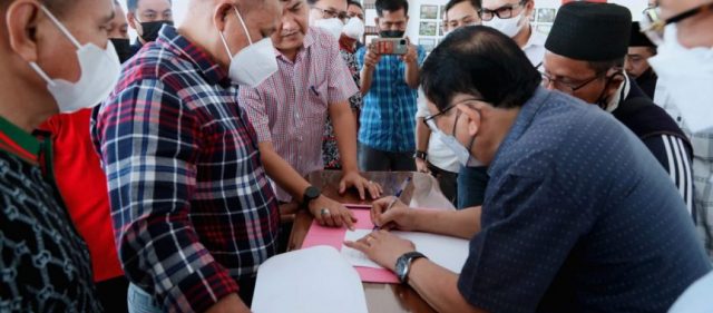 Selanjutnya, acara dilanjutkan dengan menandatangi butir-butir kesepakatan yang telah dibicarakan pada hari Jumat kemarin. (Kmf)