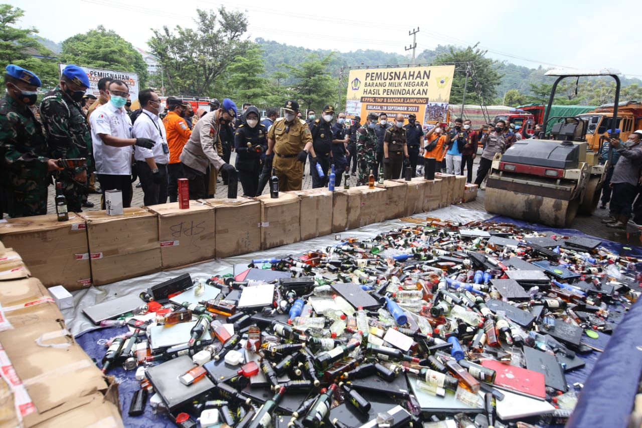 “Atas nama Pemerintah Provinsi Lampung, Saya mengapresiasi dilaksanakan pemusnahan hari ini yang merupakan wujud sinergi antara Pemerintah Provinsi Lampung dengan Instansi Vertikal Pemerintah Pusat khususnya Direktorat Jenderal Bea dan Cukai,” jelas Gubernur Arinal.